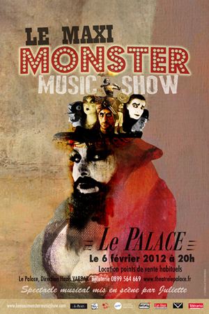 ![]() | Maxi Monster Music Show Freaks Show Musical Nouvelle version du spectacle, mis en scène par Juliette. Orchestre de phénomènes de foire, cette attachante famille de freaks plante le décor d’un surprenant cabaret clandestin librement inspiré du cirque d’antan et du cinéma burlesque. Délicieusement rétro et monstrueusement réjouissant Le Maxi Monster Music Show réveille la bête qui sommeille en chacun de nous. Un grand huit musical pour un fabuleux voyage onirique sur la différence, et le troublant mystère du genre. |
